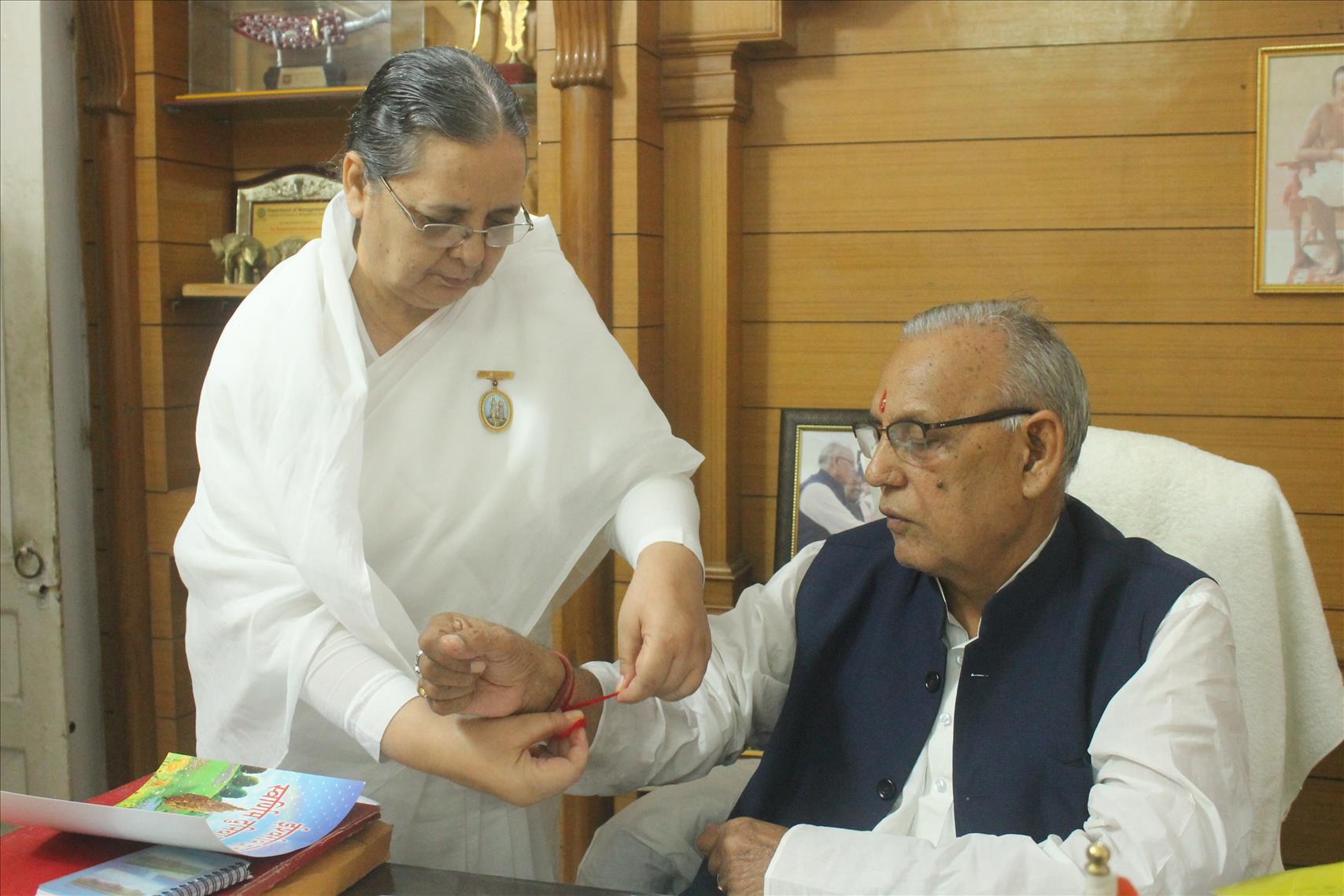 Brahma Kumari Nirmala also tied rakhi to Randhir Kumar Singh, Agriculture and Sugarcane, Animal Husbandry and Fisheries Minister, Jharkhand; C P Singh, Urban Development Minister; and Sri Ram Chandra Chandravanshi, Health Minister, Jharkhand.